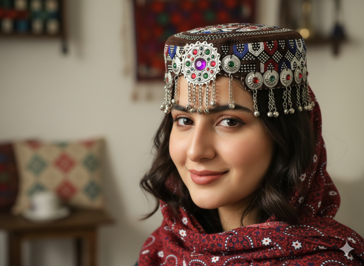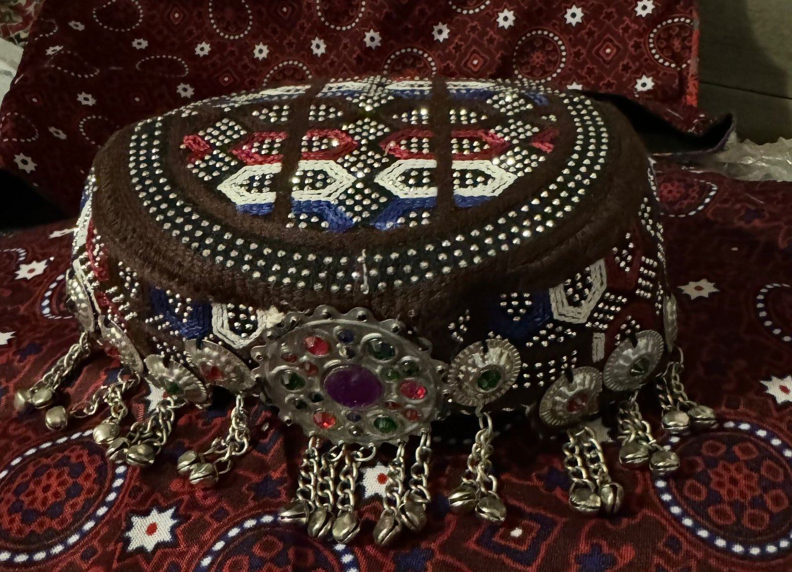 Add a touch of cultural elegance to your wardrobe with this beautifully crafted Balochi fancy cap, a true reflection of traditional artistry and heritage. This unique piece features intricate hand embroidery combined with delicate mirror work, creating a rich and eye-catching design.