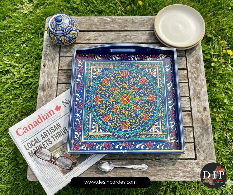 Royal Blue Pakistani Truck Art Serving Tray – A Celebration of Culture & Color